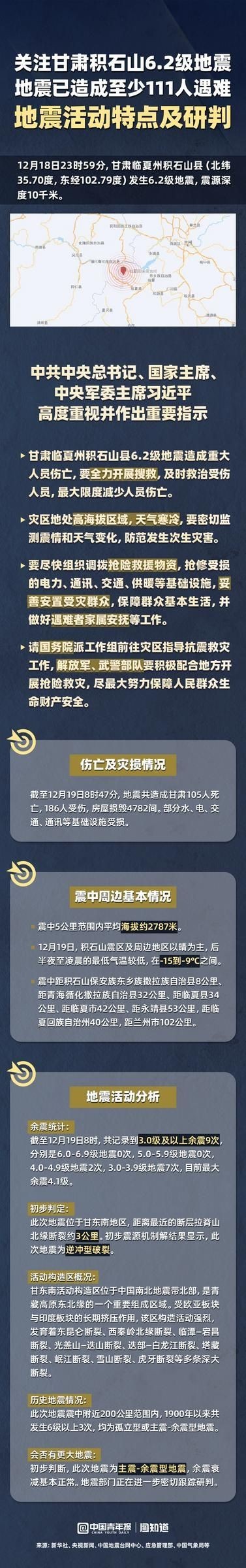 地震專(zhuan) 家表示餘(yu) 震衰減基本正常,甘肅積石山6.2級地震救援正在緊張進行中。截至12月19日8時,共記錄到3.0級及以上餘(yu) 震9次。這次地震有何特點?周邊基本海拔、溫度情況如何?曆史上發生過哪些地震?是否會(hui) 有更大的地震出現?中國地震台網中心專(zhuan) 家作出初步研判。