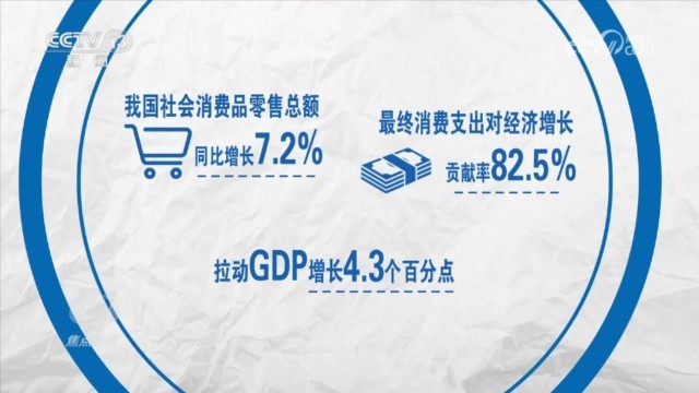 經過短暫的波動,從(cong) 7月份開始,消費再次走出了企穩回升的曲線。2023年,我國社會(hui) 消費品零售總額同比增長7.2%,最終消費支出對經濟增長貢獻率達到82.5%,拉動GDP增長4.3個(ge) 百分點。