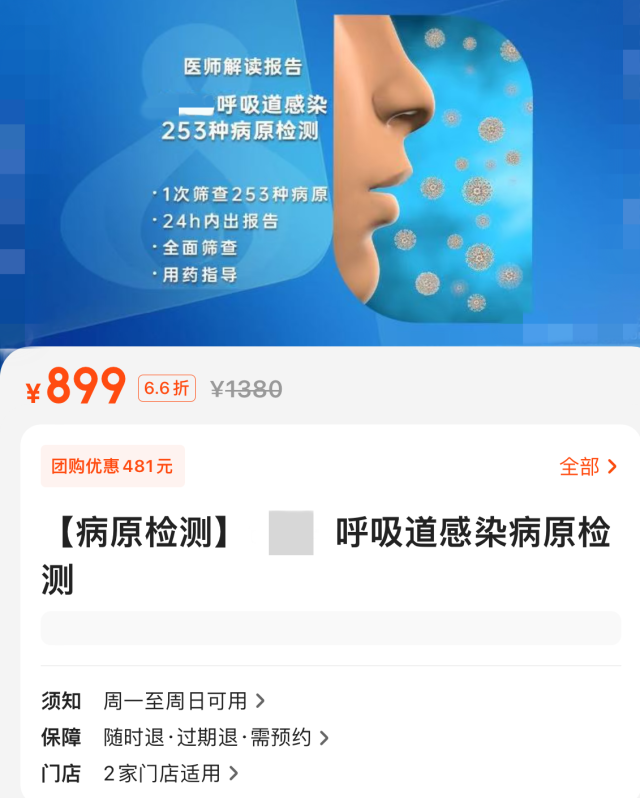事實上,這並非種類最多的檢測方案。記者在調查中發現,有機構推出的呼吸道感染病原檢測一次篩查病原多達253種,原價(jia) 1380元,折後也要899元。