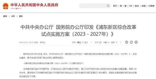 近日,中共中央辦公廳、國務院辦公廳印發了《浦東(dong) 新區綜合改革試點實施方案(2023-2027年)》。