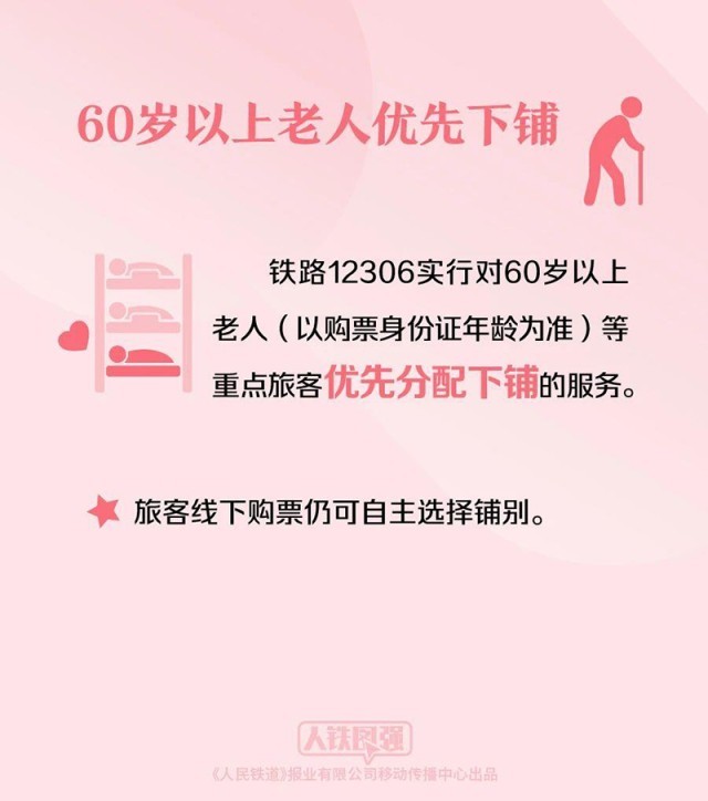 在票量充足的情況下,係統自動識別60歲以上的老年旅客並優(you) 先安排下鋪。如果是多人同行一份訂單,係統也會(hui) 自動分配相鄰鋪位。