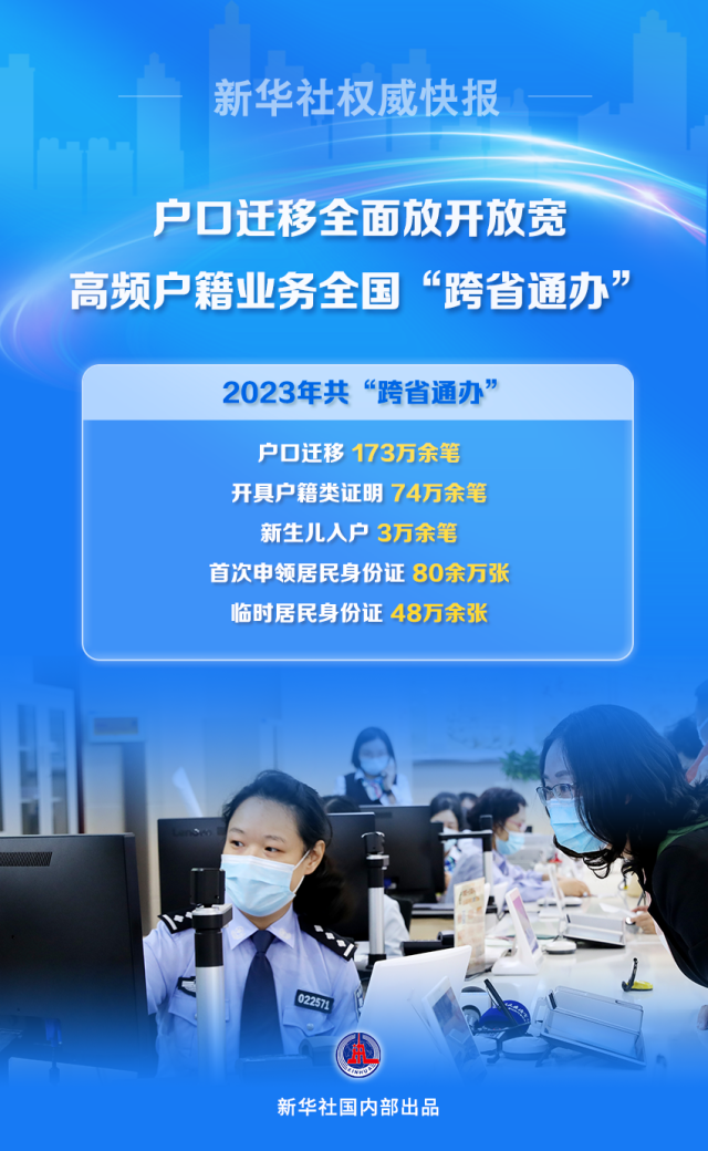 2023年,公安部組織全麵實施戶口遷移、開具戶籍類證明等高頻戶政業(ye) 務“跨省通辦”。截至目前,全國範圍已實現首次申領居民身份證、申領臨(lin) 時居民身份證及戶口遷移和開具戶籍類證明“跨省通辦”。