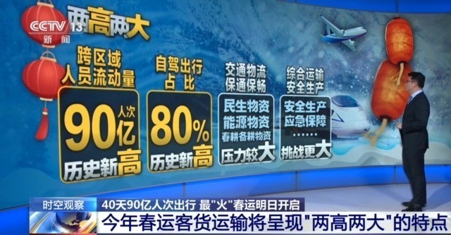 根據交通運輸部此前發布的數據,今年春運期間全國跨區域人員流動量預計將達到90億(yi) 人次,創曆史新高。