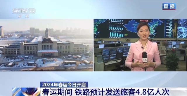 總台央視記者 陳晰:40天春運,全國鐵路預計發送旅客4.8億(yi) 人次,日均1200萬(wan) 人次。今天是春運首日,全國鐵路預計發送旅客1060萬(wan) 人次。2024年春運的火車票預售已經從(cong) 1月12日開始發售,從(cong) 目前的售票情況來看,旅客出行需求旺盛。