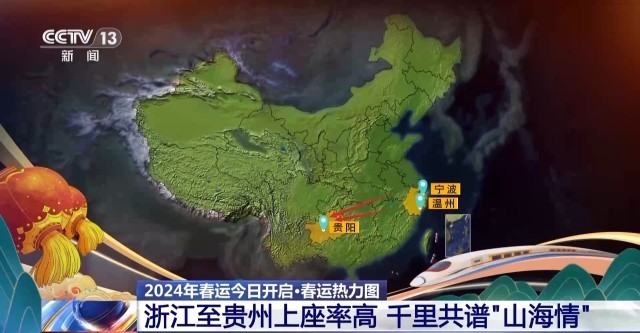 通過分析上座率,我們(men) 發現最高的前兩(liang) 條線路都是從(cong) 浙江到貴州,它們(men) 分別從(cong) 溫州至貴陽和從(cong) 寧波至貴陽。這反映出同屬長江經濟帶的兩(liang) 地深厚的聯係,跨越千山萬(wan) 水的人流交織,不僅(jin) 是地理上的連接,更是經濟文化交流、互利共贏合作的深厚“山海情”。