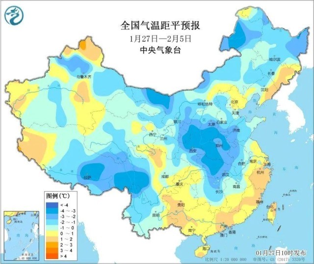 31日開始,冷空氣發力,中東(dong) 部氣溫將自北向南逐步下跌,北方疊加雨雪影響,氣溫下滑明顯,到2月2日前後,冷空氣將推進到長江以南,屆時淮河以北大部最高氣溫將低於(yu) 0℃,長江沿線5℃上下,氣溫從(cong) 偏高轉為(wei) 明顯偏低。