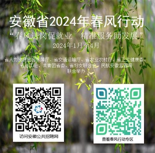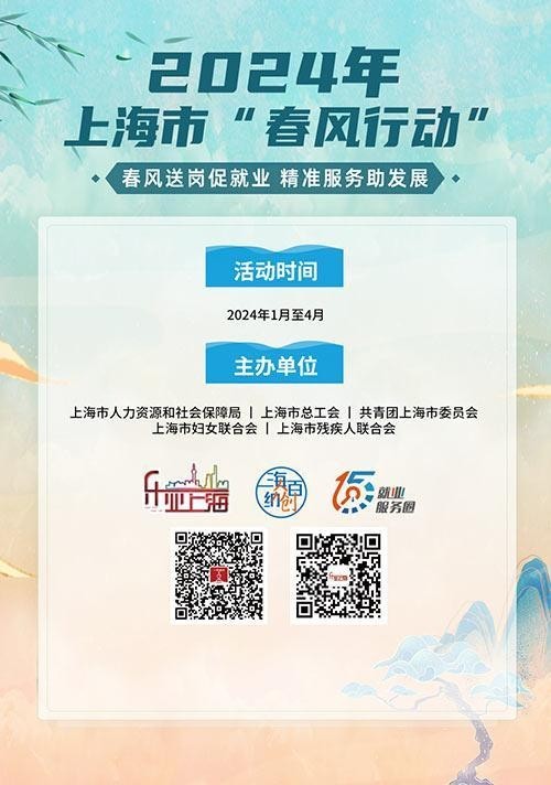 2024年春風行動正在各地火熱開展。今天,人力資源社會(hui) 保障部公布各地春風行動活動專(zhuan) 區、招聘服務平台以及微信小程序,發布現場招聘會(hui) 、網上招聘會(hui) 、直播帶崗等活動安排以及企業(ye) 用工需求,將崗位送到勞動者身邊。大家可通過掃描下方二維碼、點擊網站鏈接、進入微信小程序查看。