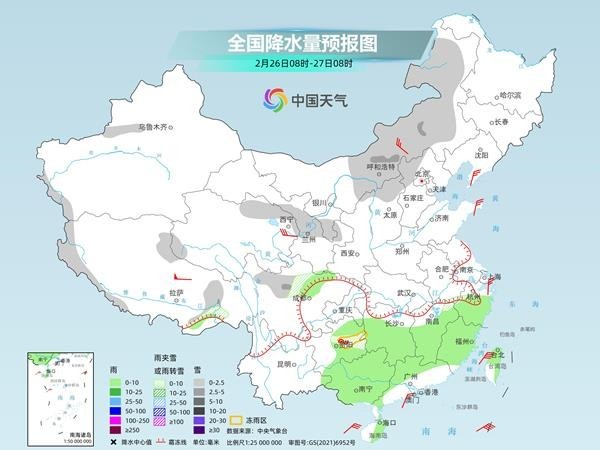 今明天(2月26日至27日),南方大範圍陰雨天氣持續,多以小雨為(wei) 主;北方的華北、東(dong) 北等地部分地區先後有降雪。後天開始至3月1日,我國中東(dong) 部又將有大範圍雨雪天氣,南方大部近期降水頻繁,公眾(zhong) 春運出行請注意防範。氣溫方麵,今天至3月1日,我國大部地區氣溫仍較常年同期偏低,江南等地部分地區偏低7℃左右,濕冷感較重。