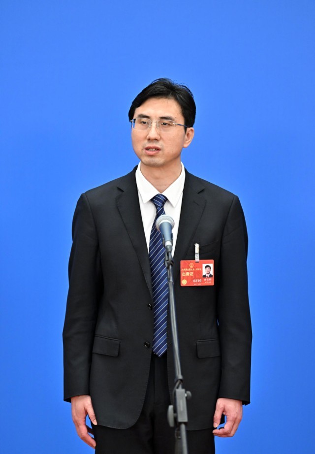 在第十四屆全國人民代表大會(hui) 一次會(hui) 議舉(ju) 行的第二場“代表通道”采訪活動上,孫東(dong) 明接受媒體(ti) 采訪(2023年3月7日攝)。新華社記者 李鑫 攝