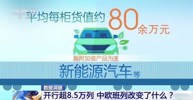 全程時刻表中歐班列速度最快,貨值最高。它的貨品以新能源汽車等高附加值產(chan) 品為(wei) 主。平均每櫃貨值約80餘(yu) 萬(wan) 元,比普通班列高出13%。去年中歐班列承載的貿易額超過750億(yi) 美元,比前三年的平均值增長了50%。