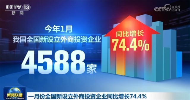 今年1月,我國全國新設立外商投資企業(ye) 4588家,同比增長74.4%。製造業(ye) 實際使用外資金額增長20.5%,其中高技術製造業(ye) 實際使用外資增長40.6%。