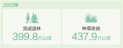 本報北京3月12日電 (記者顧仲陽)全國綠化委員會(hui) 辦公室12日發布《2023年中國國土綠化狀況公報》顯示:2023年我國完成造林399.8萬(wan) 公頃、種草改良437.9萬(wan) 公頃、治理沙化石漠化土地190.5萬(wan) 公頃。完成國土綠化任務超800萬(wan) 公頃,國土綠化工作取得新成果。