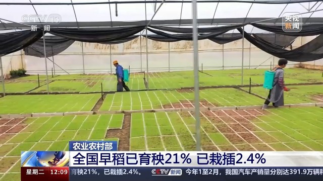 全國早稻已育秧21%,已栽插2.4%。其中,海南育秧近六成、栽插近七成;雲(yun) 南育秧近九成、廣東(dong) 過6成、廣西福建育秧近半,零星栽插;江西、湖南零星育秧,預計3月20日之後開始大麵積集中育秧。