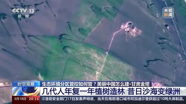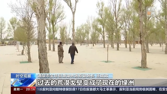 甘肅酒泉金塔縣潮湖林場副場長 王端政:過去的沙進人退變成了現在的人進沙退,過去的荒漠戈壁變成了現在的綠洲,現在金塔的生態環境得到了很大的改善。
