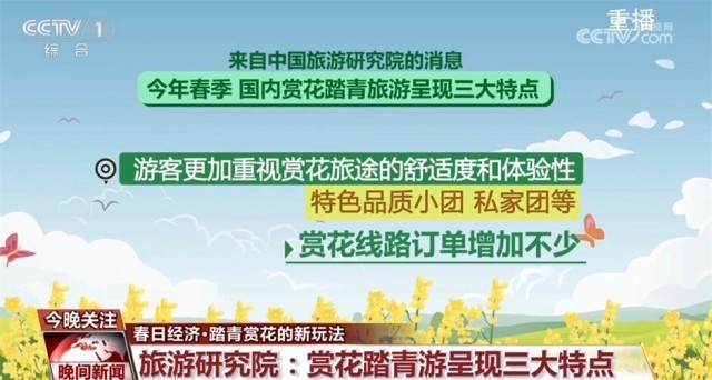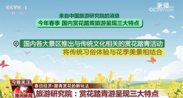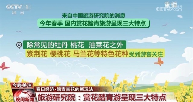 來自中國旅遊研究院的消息,今年春季,國內(nei) 賞花踏青旅遊呈現三大特點:首先,除了常見的牡丹、桃花、油菜花之外,紫荊花、櫻桃花、馬蘭(lan) 花等特色花種也受到遊客關(guan) 注;其次,國內(nei) 各大景區推出與(yu) 傳(chuan) 統文化相關(guan) 的賞花踏青活動,將傳(chuan) 統習(xi) 俗體(ti) 驗與(yu) 花季美景相結合;此外,遊客也更加重視賞花旅途的舒適度和體(ti) 驗性,特色品質小團、私家團等賞花線路訂單增加不少。
