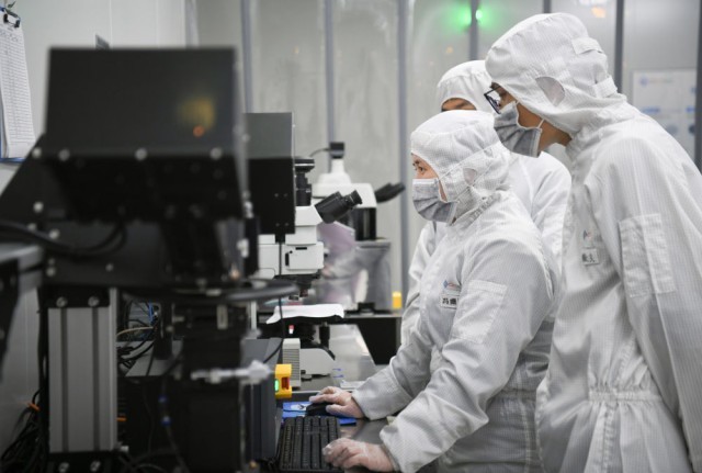 2024年3月4日,技術人員在陝西光電子先導院科技有限公司測試晶圓。新華社記者 張博文 攝
