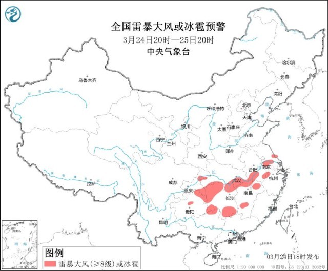 央視網消息:中央氣象台3月24日18時繼續發布強對流天氣藍色預警。預計3月24日20時至25日20時,安徽中南部、江蘇中南部、湖北東(dong) 部和南部、重慶東(dong) 部、貴州東(dong) 部、湖南北部和東(dong) 南部、江西東(dong) 北部和中南部、浙江西北部、廣西東(dong) 北部等地的部分地區將有8-10級雷暴大風或冰雹天氣;安徽中南部、江蘇中南部、上海北部和西部、湖北東(dong) 部和南部、重慶東(dong) 部、貴州東(dong) 部、湖南、江西、浙江西北部、廣西東(dong) 北部、廣東(dong) 西北部等地的部分地區將有短時強降水天氣,最大小時雨量20-40毫米,局地可達50毫米以上。