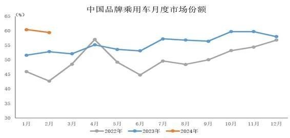 2024年1-2月,中國品牌乘用車銷量206.6萬(wan) 輛,同比增長26.7%,市場份額為(wei) 59.9%,上升7.6個(ge) 百分點。