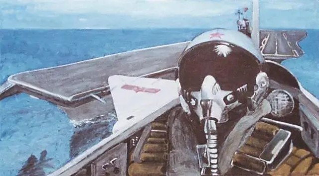 一名飛行員駕駛艦載機從(cong) 航母上起飛