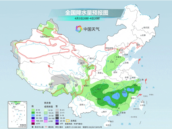 4-6日在冷空氣的推動下,雨帶會(hui) 南落,華南中北部、江南及貴州東(dong) 部等地有中到大雨,局地有暴雨或大暴雨。