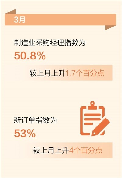 3月製造業采購經理指數為50.8%