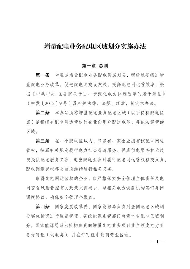 央視網消息:據國家發展改革委、國家能源局,為(wei) 規範增量配電業(ye) 務配電區域劃分,積極穩妥推進增量配電業(ye) 務改革,國家發展改革委、國家能源局修訂了《增量配電業(ye) 務配電區域劃分實施辦法》。