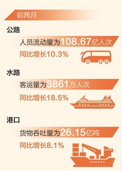 本報北京4月1日電 (記者韓鑫)記者近日從(cong) 交通運輸部獲悉:前兩(liang) 月,我國客運、貨運、港口吞吐量等交通運輸行業(ye) 多項統計指標實現正增長。