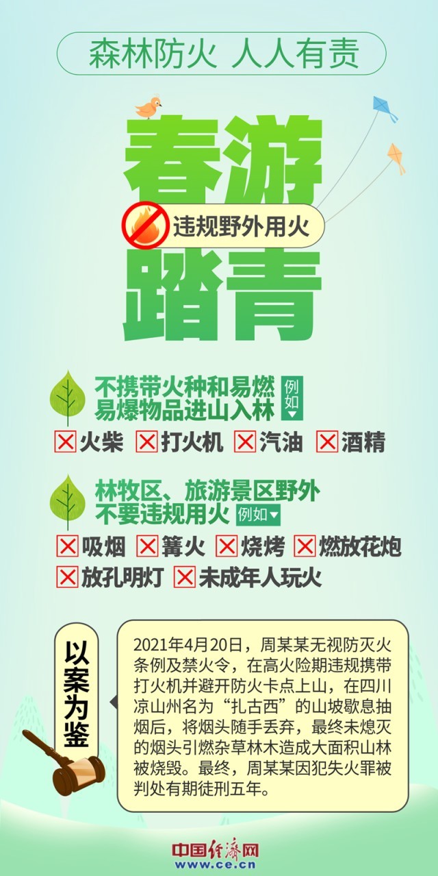為(wei) 切實有效排查整治森林草原火災隱患,嚴(yan) 肅查處違規用火行為(wei) ,確保重大隱患動態清零,最大程度減少人為(wei) 因素引發森林草原火災,近日,根據國家森林草原防滅火指揮部今年重點工作安排部署,國家森林草原防滅火指揮部辦公室、國家林業(ye) 和草原局、公安部、應急管理部、國家能源局決(jue) 定,開展2024年森林草原火災重大隱患動態清零和查處違規用火行為(wei) 專(zhuan) 項行動。