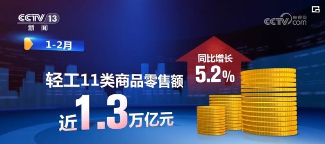 輕工消費品市場活力逐步增強。前兩(liang) 個(ge) 月,輕工11類商品零售額近1.3萬(wan) 億(yi) 元,同比增長5.2%。輕工全行業(ye) 出口額增長17.4%。