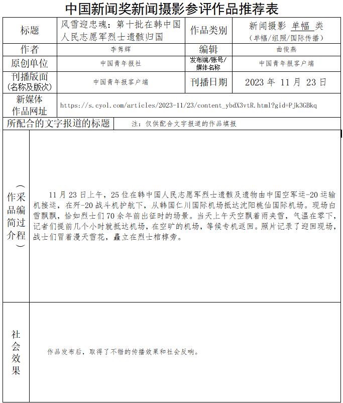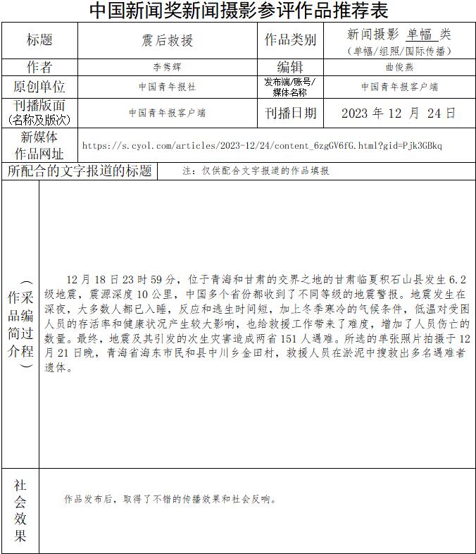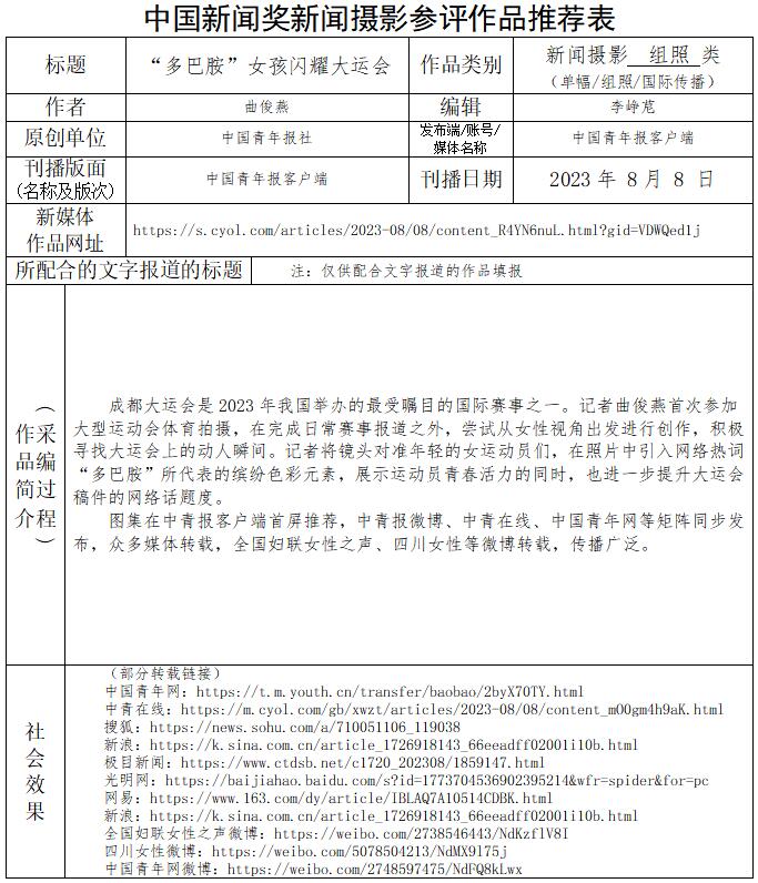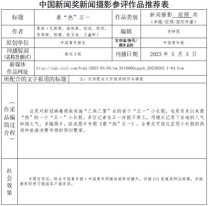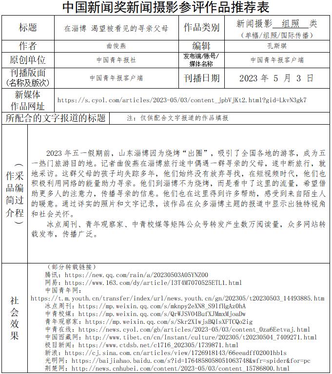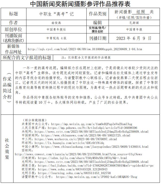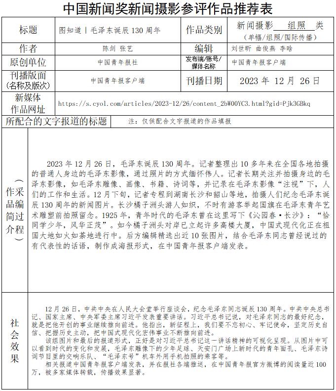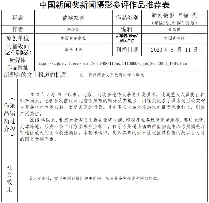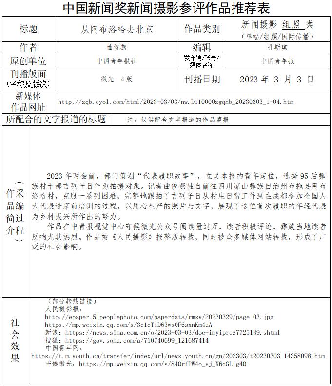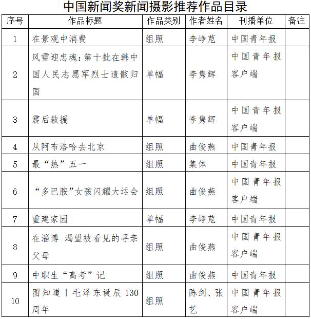 中國青年報社推薦參評第34屆中國新聞獎新聞攝影作品專項初評公示
