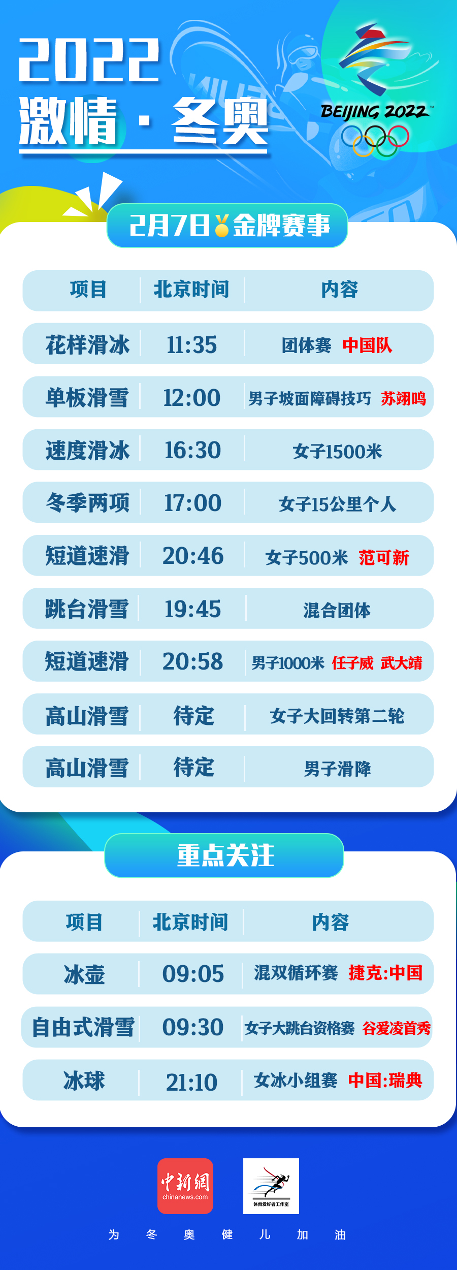 2月7日冬奧看點:蘇翊鳴爭冠、穀愛淩首秀