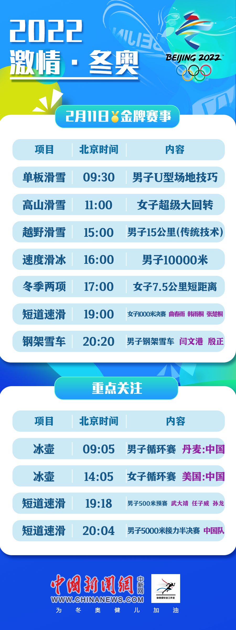 2月11日冬奧看點:武大靖開啟衛冕之旅