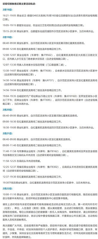 22日,河南省濮陽縣疾病預防控製中心發布關(guan) 於(yu) 新冠肺炎核酸檢測陽性人員密切接觸者活動軌跡的公告:2月22日13時40分,濮陽縣收到湖北省疾控中心協查函,一居民為(wei) 武漢市新冠病毒核酸陽性人員的密切接觸者。