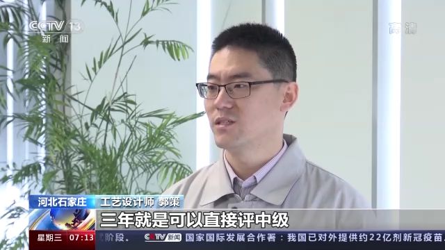 工藝設計師 郭策:現在碩士研究生畢業(ye) 之後,三年就可以直接評中級,也就是說應該是省了兩(liang) 年時間。