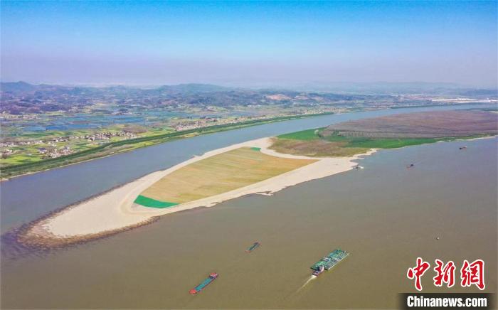 圖為(wei) 航拍武漢至安慶段6米水深航道整治工程“沙灘”變“綠洲” 陳宇 攝