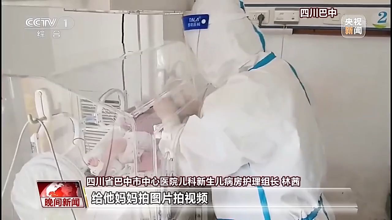 四川省巴中市中心醫院兒(er) 科新生兒(er) 病房護理組長 林茜:給他媽媽拍圖片拍視頻,(以)第一人稱的方式給他媽媽寫(xie) 信。媽媽,媽媽,我是濤濤,今天我吃了50毫升奶,睡得非常香,請你不要擔心我,媽媽你也要加油。