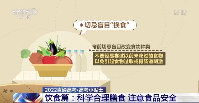 切忌盲目“換食。考前切忌盲目改變食物種類,不要輕易嚐試以前未吃過的食物,以免引起食物過敏或胃腸道刺激。