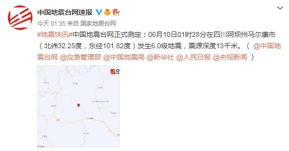 據國家地震台網官方微博消息,四川阿壩州今晨發生多次地震,其中01時28分發生6.0級地震,震源深度13千米。另據央視新聞客戶端消息,國務院抗震救災指揮部辦公室、應急管理部已啟動國家地震應急四級響應。應急管理部連夜派出工作組赴四川指導協助地方開展抗震救災工作。四川省緊急啟動地質災害三級應急響應,目前暫未收到震區及周邊區域因次生地質災害造成人員傷(shang) 亡的報告。