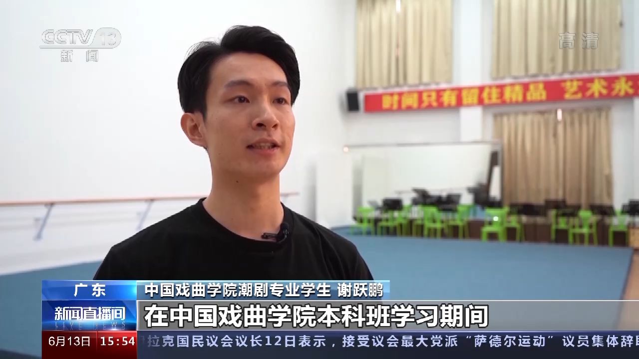 中國戲曲學院潮劇專(zhuan) 業(ye) 學生 謝躍鵬:本身我是武生行當,在中國戲曲學院本科班學習(xi) 期間,我也是有意識在武戲方麵下功夫,希望自己能學到更多規範性的動作,一些高難度技巧。我還希望盡自己所能,把這些知識傳(chuan) 承給更多年輕人,把更多的武戲呈現給觀眾(zhong) 。