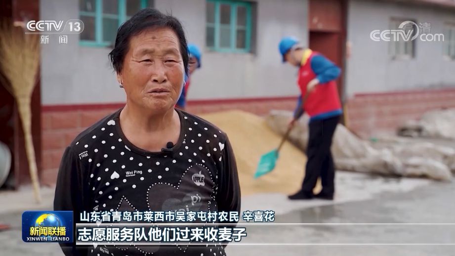 在山東(dong) 萊西,66萬(wan) 多畝(mu) 小麥進入集中收獲期,當地30多家社會(hui) 化服務組織和誌願服務隊活躍在麥收一線。吳家屯村農(nong) 民辛喜花的孩子在外打工,在誌願服務隊幫助下,她家3畝(mu) 多小麥不到一小時就收獲完成運送到家。