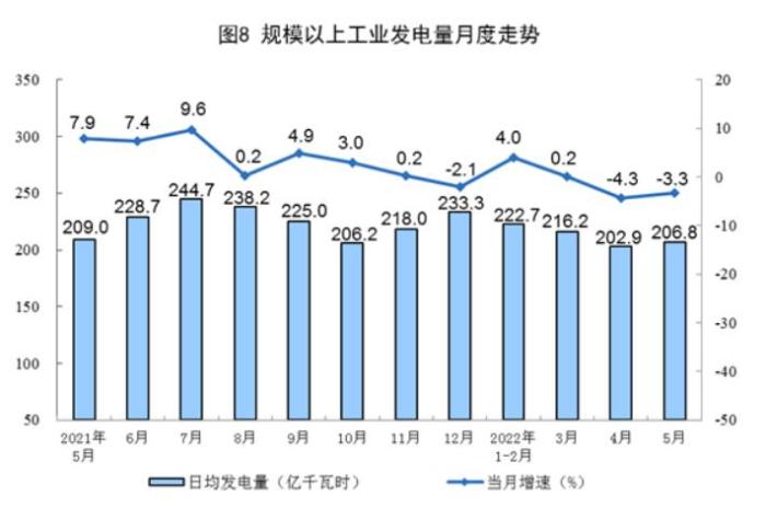 統計局:5月份發電6410億千瓦時 同比下降3.3%