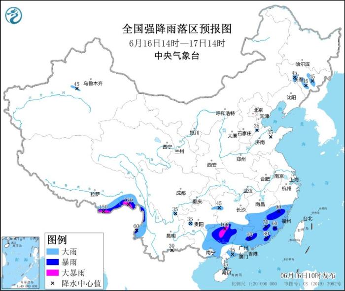 中新網6月16日電 據中央氣象台網站消息,中央氣象台6月16日10時繼續發布暴雨藍色預警:預計,6月16日14時至17日14時,福建、江西南部、湖南南部、廣東(dong) 大部、廣西中東(dong) 部以及雲(yun) 南西北部、西藏東(dong) 南部等地的部分地區有大到暴雨,局地大暴雨(100~160毫米)。上述部分地區伴有短時強降水(最大小時降雨量20~50毫米,局地可超過60毫米),局地有雷暴大風等強對流天氣。