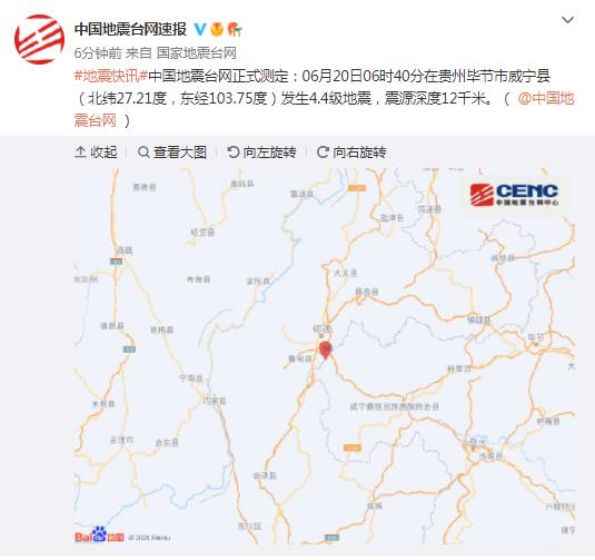 貴州畢節市威寧縣發生4.4級地震 震源深度12千米