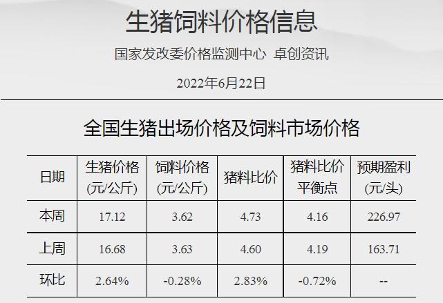 生豬飼料價(jia) 格信息,圖片來源:國家發改委價(jia) 格監測中心