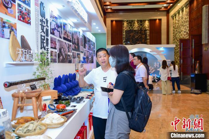 會(hui) 場外擺放的臨(lin) 安特色產(chan) 品。 杜煥祺 攝