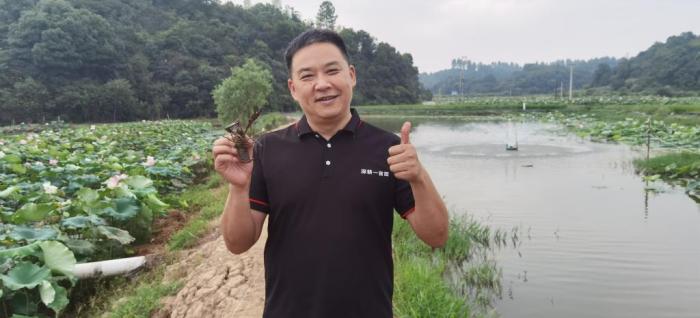 隨著鄉(xiang) 村振興(xing) 全麵推進,鄧述東(dong) 又開始打造“一畝(mu) 田脫貧”模式升級版——“深耕一畝(mu) 田”。2021年年初,鄧述東(dong) 團隊與(yu) 企業(ye) 合作,在湘潭縣梅林橋現代農(nong) 業(ye) 示範園流轉耕地1100餘(yu) 畝(mu) (包含部分魚塘、荷塘),引進廣東(dong) 一家澳洲青蝦繁育企業(ye) ,采取“蓮+蝦”“稻+蝦”、水塘“魚+蝦”等模式進行試驗養(yang) 殖,蝦苗成活率接近100%,成長速度達到預期目標。
