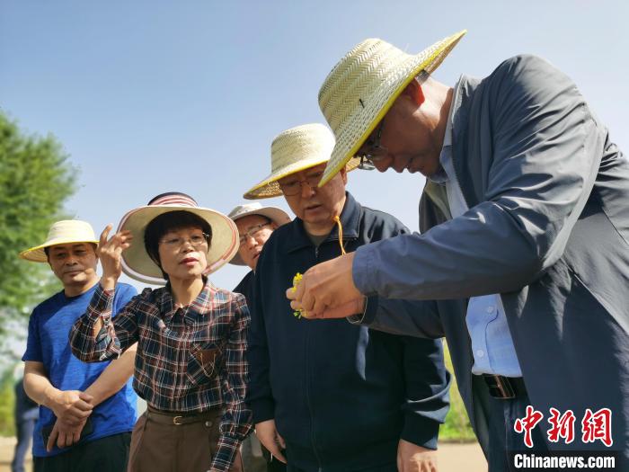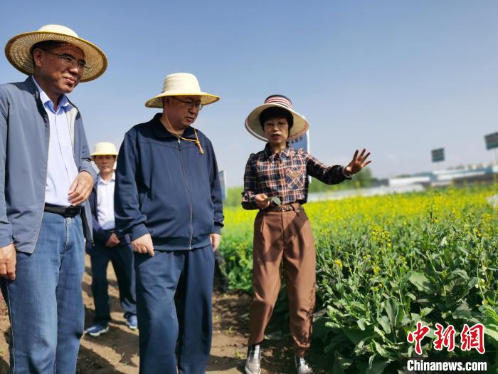 圖為(wei) 青海省政協主席公保紮西(中)調研油菜種植。 張添福 攝