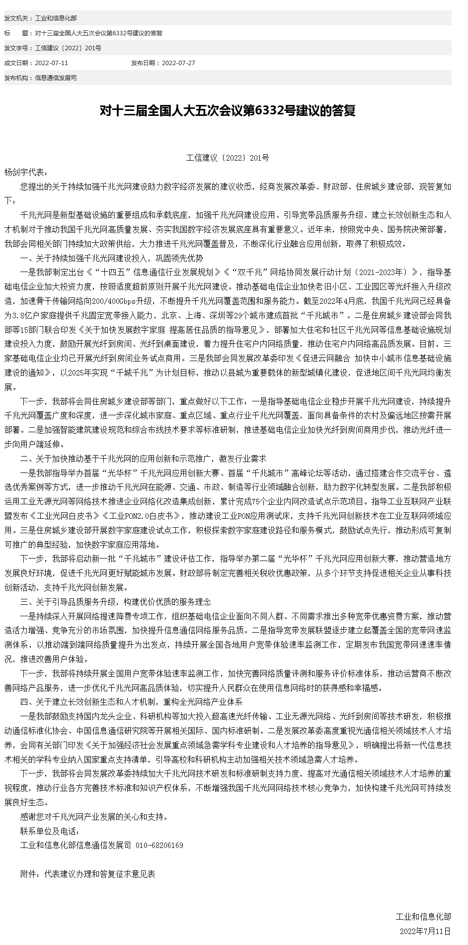 中新網7月27日電 工信部網站27日發布對十三屆全國人大五次會(hui) 議第6332號建議的答複。工信部表示,將指導基礎電信企業(ye) 穩步開展千兆光網建設,持續提升千兆光網覆蓋廣度和深度,進一步深化城市家庭、重點區域、重點行業(ye) 千兆光網覆蓋,麵向具備條件的農(nong) 村及偏遠地區按需開展部署。加強智能建築建設規範和綜合布線技術要求等標準研製,推進基礎電信企業(ye) 加快光纖到房間商用步伐,推動光纖進一步向用戶端延伸。(中新財經)