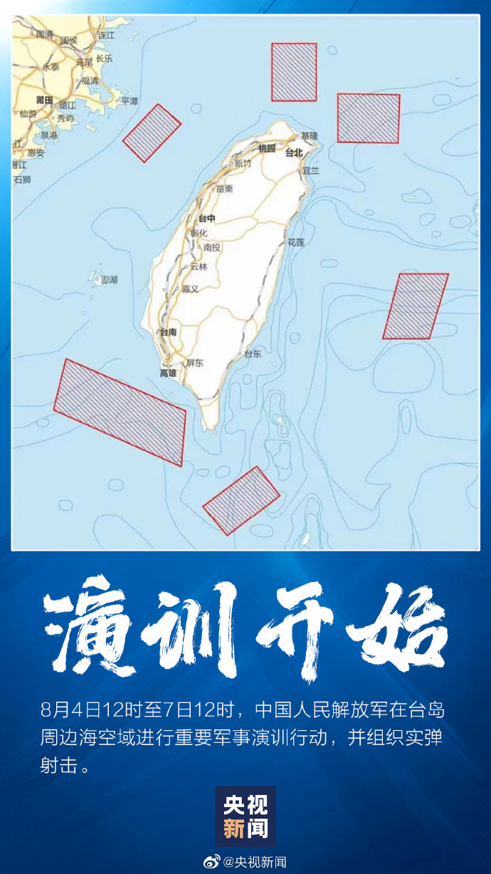 今日12時至7日12時,解放軍(jun) 重要軍(jun) 事演訓行動進行,並組織實彈射擊。此次實戰演訓選擇環島六大區域,在此期間,有關(guan) 船隻和飛行器不要進入有關(guan) 海域和空域!