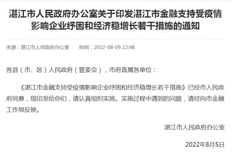 中新網8月10日電 廣東(dong) 省湛江市人民政府網站9日發布《關(guan) 於(yu) 印發湛江市金融支持受疫情影響企業(ye) 紓困和經濟穩增長若幹措施的通知》,提及促進房地產(chan) 市場平穩健康發展金融服務等方麵的措施。